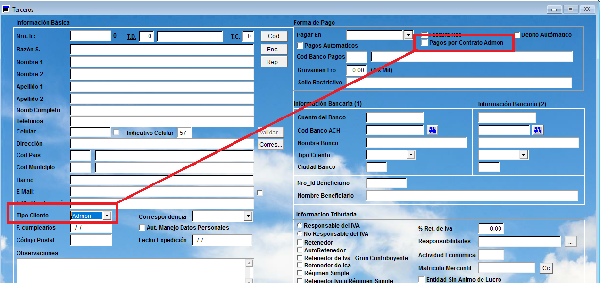 Se permite habilitar a todos los inmobiliarios cuando seleccionen el tipo de cliente que aparezca el campo Pagos por contrato Admon. Esto tiene relación directa con los egresos.