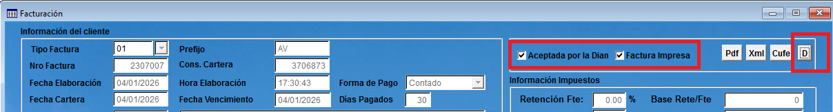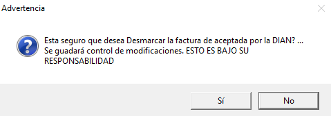Formulario facturación: Se permite marcar o desmarcar facturas enviadas a la DIAN. Presionando el Botón D...