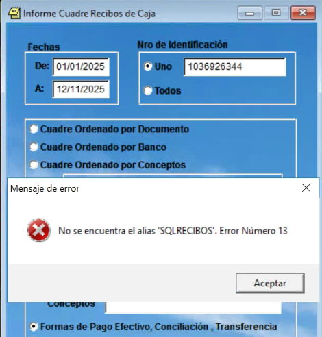 Se corrige error cuando se desea consultar el informe por número de cedula.