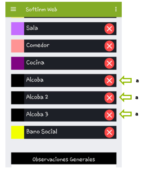 a. En caso de requerir un espacio varias veces debido a su repetición en el inmueble, se seleccionará tocándolo con el dedo tantas veces como sea necesario. Por ejemplo, al inventariar un apartamento con tres alcobas, se tocará el espacio denominado "HABITACIÓN" tres veces para enumerar las habitaciones correspondientes en la plantilla utilizada.