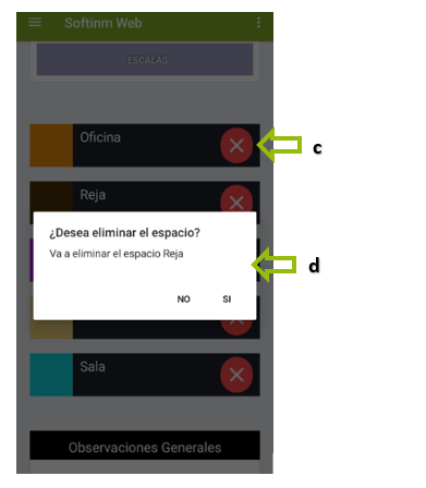 c. Si seleccionamos un espacio que no necesitamos inventariar, simplemente tocamos la X para eliminarlo.