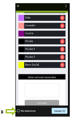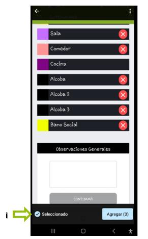 6. Seleccionaremos con un toque aquellos espacios necesarios según el tipo de inmueble que vamos a inventariar.