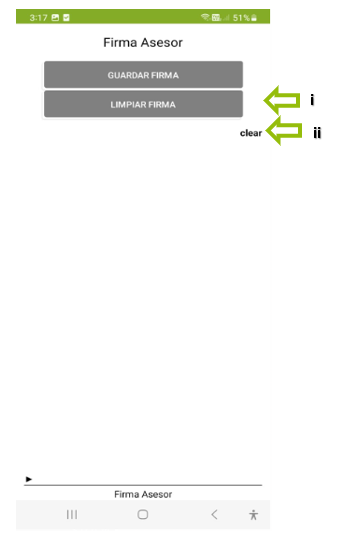 i. LIMPIAR FIRMA: Borra lo que está escrito en este espacio de firma.