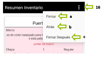 Las opciones de ATRÁS y FIRMAR DESPUÉS permiten regresar para completar el inventario más tarde.