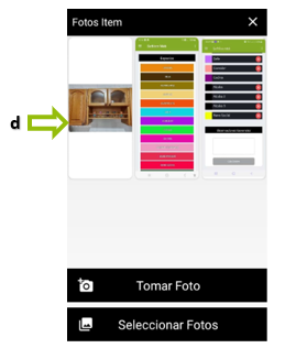 d. Las fotos que tomamos o seleccionamos van apareciendo en este campo para que podamos revisarlas antes de guardarlas en el ítem.