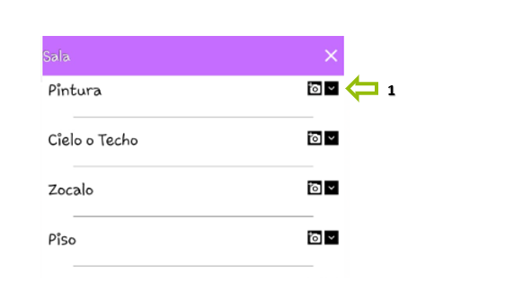 h. Cuando hayamos terminado de subir las fotos en un ítem, simplemente tocamos la "X" una vez para regresar al listado de espacios seleccionados.