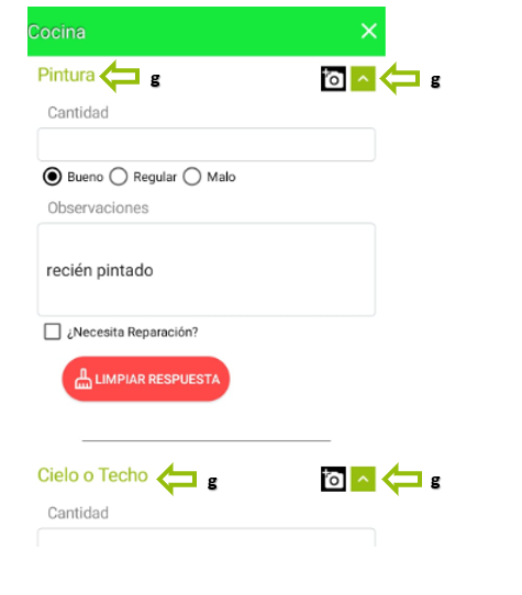e. Si por error se comienza a diligenciar un ítem y se desea eliminar la información para que no aparezca en el inventario, simplemente se debe tocar en "LIMPIAR RESPUESTA" para eliminar lo diligenciado.