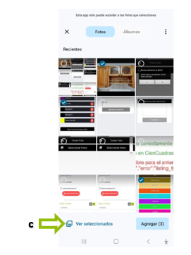 c. En la parte inferior nos aparecen dos opciones: “Ver Seleccionados” y “Agregar” con el número de fotos que tenemos seleccionadas.